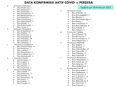 Dan ini selengkapnya Up Date Kasus Corona di Kabupaten Pangandaran per 04 Pebruari 2021 :