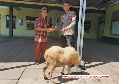 pangandarannews.com/tasiknews – Pada Idul Adha 1443 H / 2022, Polsek Salopa Polres Tasikmalaya menyerahkan satu ekor hewan qurban berupa seekor kambing kepada tokoh ulama sekaligus Ketua Dewan Kemakmuran Mesjid (DKM) Al-lkhlas, Ajeungan Ipay di Babakan Waru Salopa kabupaten Tasikmalaya.